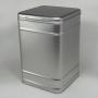 Kovová dóza na čaj vyrobená z efektního stříbřitého kovu, matný povrch. |
